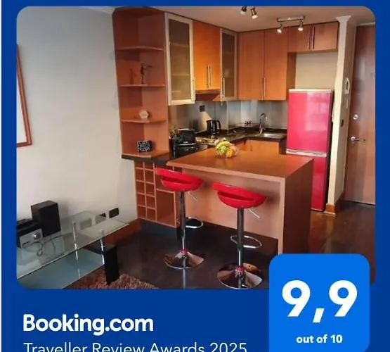 O local está a 5 minutos a pé da parragem de autocarro Granaderos / Manuel Montt. Os visitantes podem mergulhar em piscina no último andar.